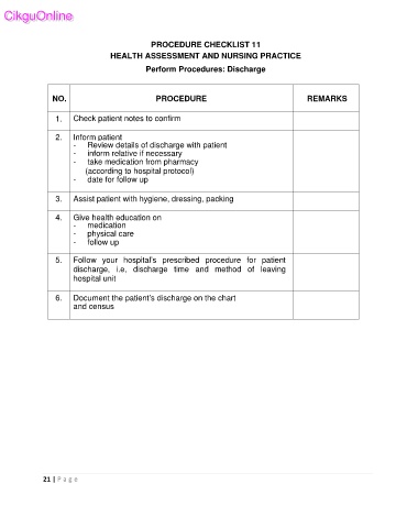 PROCEDURE CHECKLIST 11
