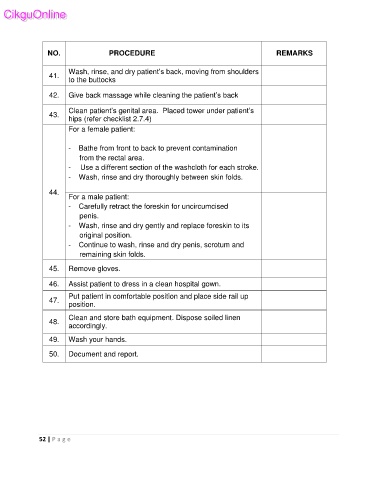 42. Give back massage while cleaning the patient’s back