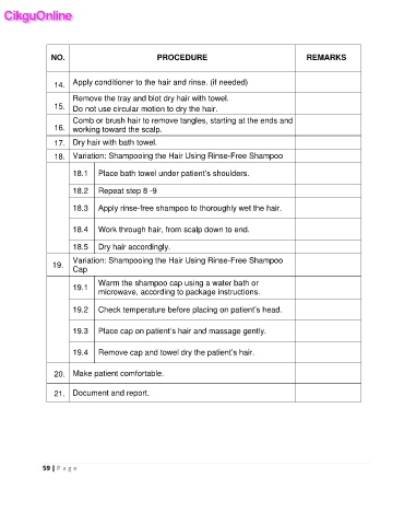 18.3 Apply rinse-free shampoo to thoroughly wet the hair.