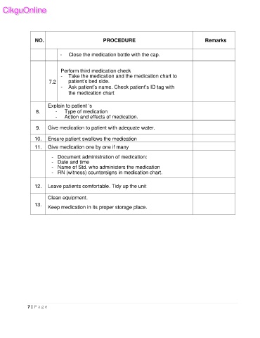 9. Give medication to patient with adequate water.