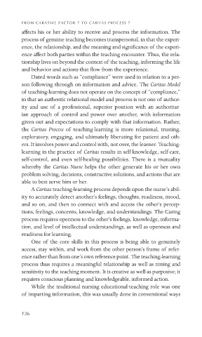 A Caritas teaching-learning process depends upon the nurse’s abil-