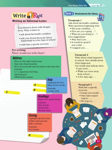 • Write the postcode and the state on the same line. Use words that indicate time: