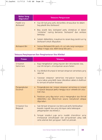 b. Sisa klinikal dikumpul di tempat simpanan sementara yang