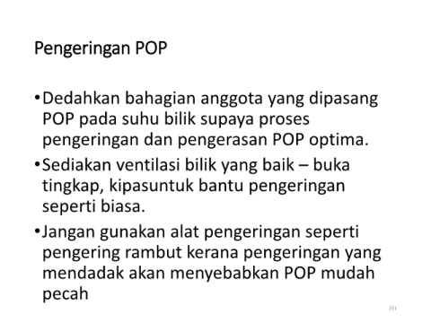 pengeringan dan pengerasan POP optima.