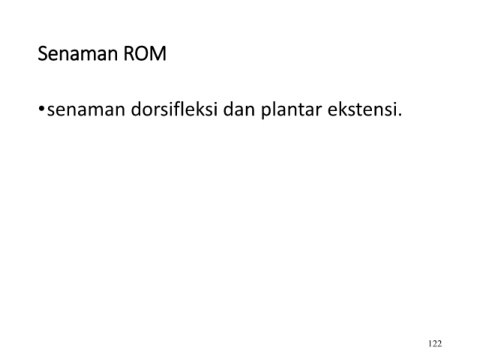 Senaman ROM •senaman dorsifleksi dan plantar ekstensi. 122