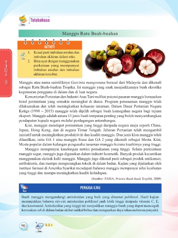 eksport. Manggis adalah antara 15 jenis buah tempatan penting yang boleh menyumbangkan