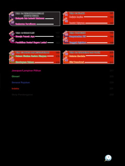 Unit TEMA 15: BAHASA DAN KESUSASTERAAN 169 Unit TEMA 18: PENTADBIRAN DAN POLITIK 205