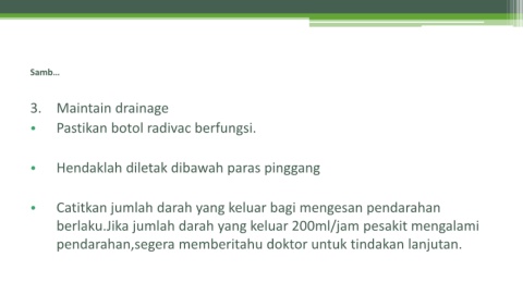 • Catitkan jumlah darah yang keluar bagi mengesan pendarahan