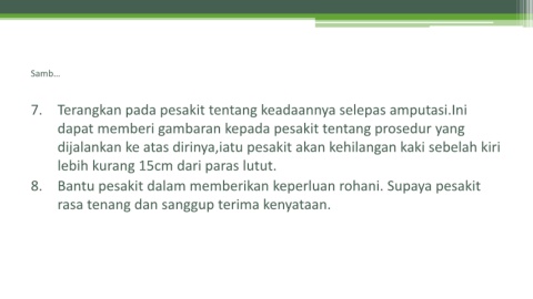 7. Terangkan pada pesakit tentang keadaannya selepas amputasi.Ini