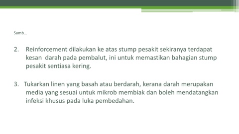 2. Reinforcement dilakukan ke atas stump pesakit sekiranya terdapat