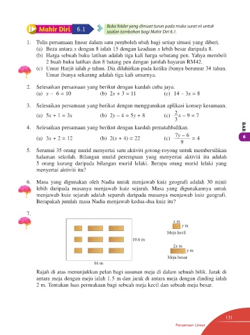 1. Tulis persamaan linear dalam satu pemboleh ubah bagi setiap situasi yang diberi.