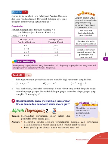 1. Tulis tiga pasangan penyelesaian yang mungkin bagi persamaan yang berikut.