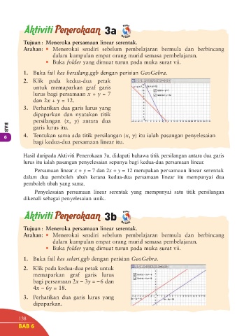 Hasil daripada Aktiviti Penerokaan 3a, didapati bahawa titik persilangan antara dua garis