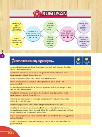 menyelesaikan persamaan linear dalam satu pemboleh ubah.