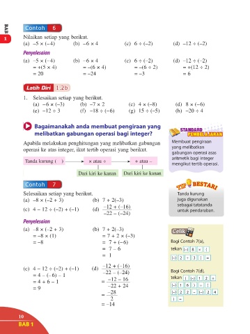 (a) –8 × (–2 + 3) (b) 7 + 2(–3) juga digunakan
