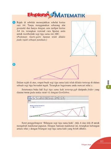 Seterusnya buka fail Segi tiga sama kaki terterap.ggb daripada folder yang
