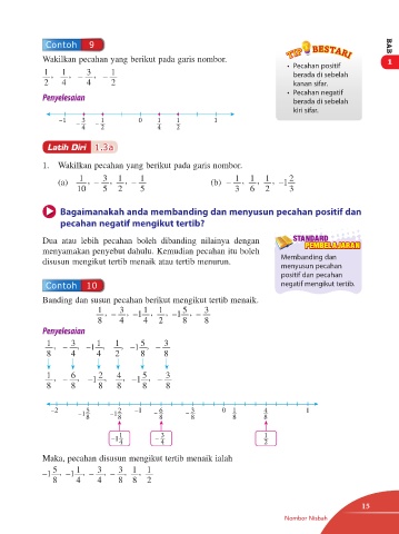 1. Wakilkan pecahan yang berikut pada garis nombor.