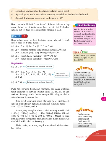 sebagai subset bagi set A dan ditulis sebagai B , A. Merujuk kepada Aktiviti