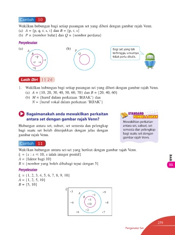 Wakilkan hubungan antara set-set yang berikut dengan gambar rajah Venn.