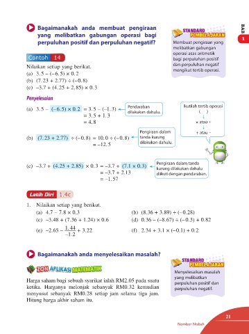(a) 3. 5 – (– 6. 5) × 0.2 = 3. 5 – (–1. 3) dilakukan dahulu. ( )