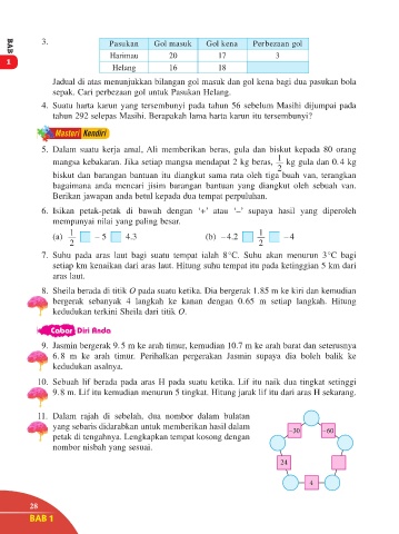 Jadual di atas menunjukkan bilangan gol masuk dan gol kena bagi dua pasukan bola