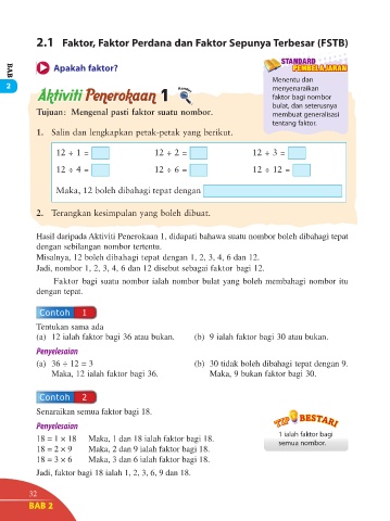 2.1 Faktor, Faktor Perdana dan Faktor Sepunya Terbesar (FSTB)