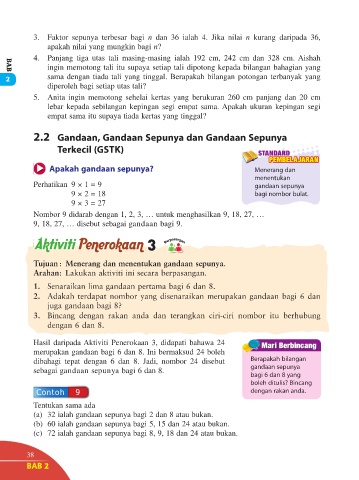 3. Faktor sepunya terbesar bagi n dan 36 ialah 4. Jika nilai n kurang daripada 36,