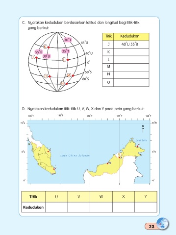 C. Nyatakan kedudukan berdasarkan latitud dan longitud bagi titik-titik