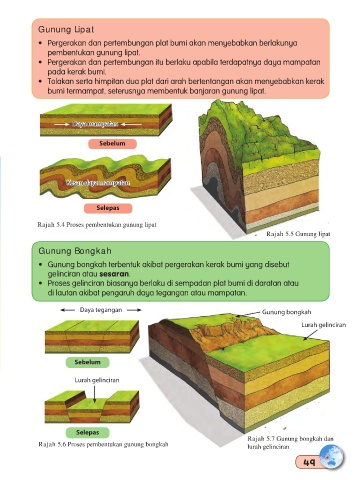 Rajah 5.4 Proses pembentukan gunung lipat