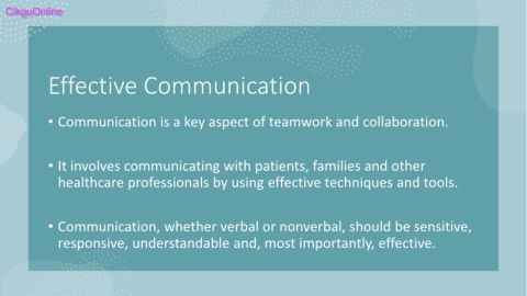 • Communication is a key aspect of teamwork and collaboration.