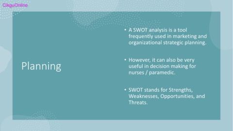 • A SWOT analysis is a tool