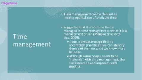 managed in time management; rather it is a