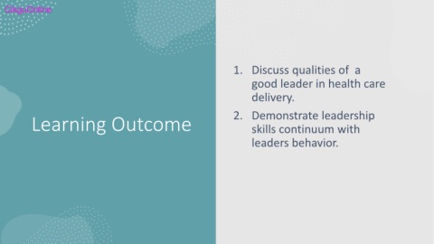 CikguOnline CikguOnline 1. Discuss qualities of a good leader in health care delivery. 2. Demonstrate leadership Learning Outcome skills continuum with leaders behavior.