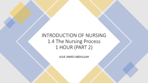 INTRODUCTION OF NURSING 1.4 The Nursing Process 1 HOUR (PART 2) JULIE JAMES ABDULLAH