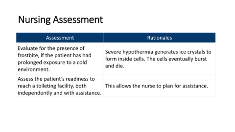 reach a toileting facility, both This allows the nurse to plan for assistance.