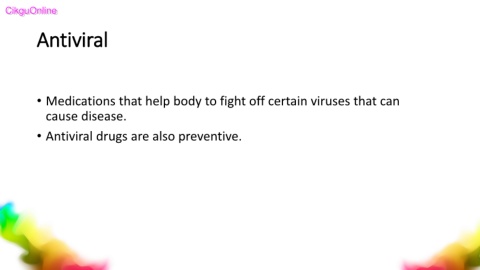CikguOnline CikguOnline Antiviral • Medications that help body to fight off certain viruses that can cause disease. • Antiviral drugs are also preventive. 49 49 49 49 49