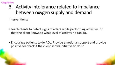 3. Activity intolerance related to imbalance