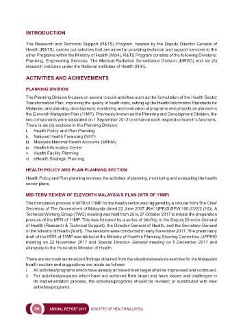 draft of the MTR of 11MP was tabled at the Ministry of Health’s Planning Steering Committee (JPPKK)