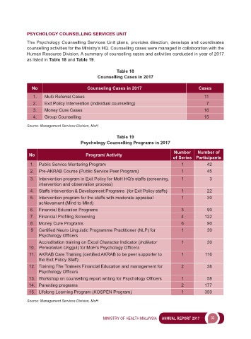 Human Resource Division. A summary of counselling cases and activities conducted in year of 2017