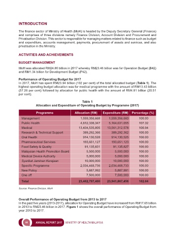 In 2017, MoH has spent RM23.94 billion (102 per cent) of the total allocated budget (Table 1). The