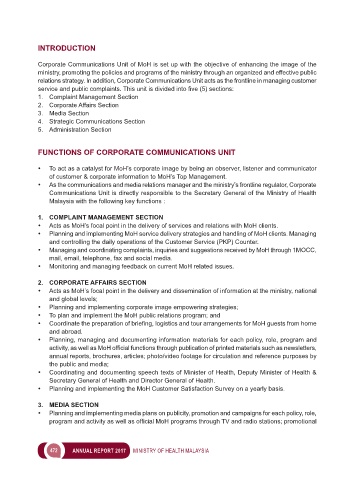 Corporate Communications Unit of MoH is set up with the objective of enhancing the image of the