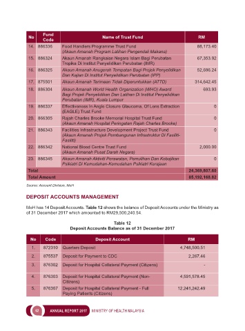 MoH has 14 Deposit Accounts. Table 12 shows the balance of Deposit Accounts under the Ministry as