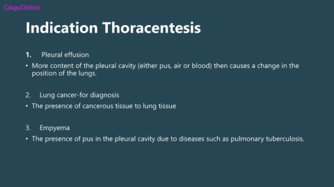 • The presence of pus in the pleural cavity due to diseases such as pulmonary tuberculosis.