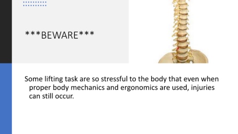 ***BEWARE*** Some lifting task are so stressful to the body that even when proper body mechanics and ergonomics are used, injuries can still occur.