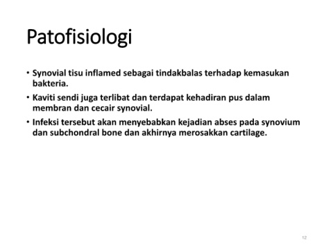 • Infeksi tersebut akan menyebabkan kejadian abses pada synovium