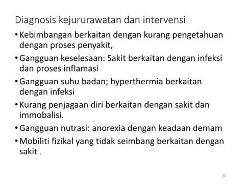 •Gangguan nutrasi: anorexia dengan keadaan demam