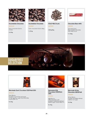 Cocoa 55% min. Milk chocolate with addition of sugar. This kind of chocolate is well balanced between white Product Catalogue Kuwait -1 st Edition