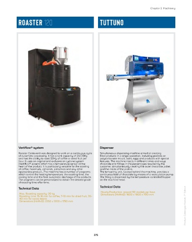 emission of the product. The programs can be personalized to final automatic discharge of the products. appropriate product…The machine has a number of programs The tempering unit, located behind the machine, provides a