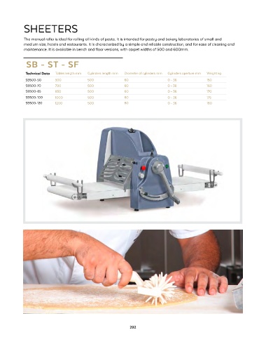 SHEETERS Technical Data Tables length mm Cylinders length mm Diameter of cylinders mm Cylinders aperture mm Weight kg