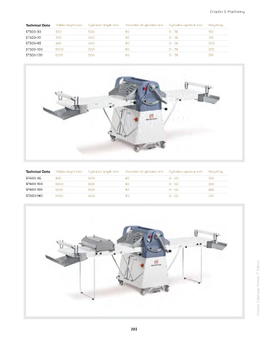 SHEETERS Technical Data Tables length mm Cylinders length mm Diameter of cylinders mm Cylinders aperture mm Weight kg